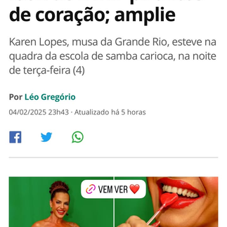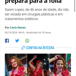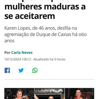 Ser musa da Grande Rio é uma honra imensa. É o reconhecimento de anos de dedicação, amor pelo samba e pela nossa comunidade. Cada desfile é uma oportunidade de representar nossa escola e nossa cultura com orgulho e paixão.